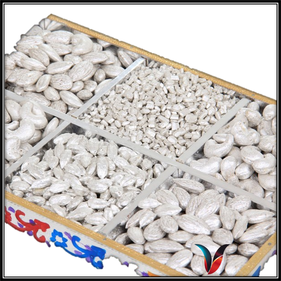 Indulge in refined nutrition with Varkveda Silver Coated Nuts Packs, curated for those who value purity and elegance. Choose from a premium selection of Silver Almonds, Silver Cashews, Silver Dates, Silver Pecan Nuts, and more—each coated with fine edible silver for a luxurious finish.