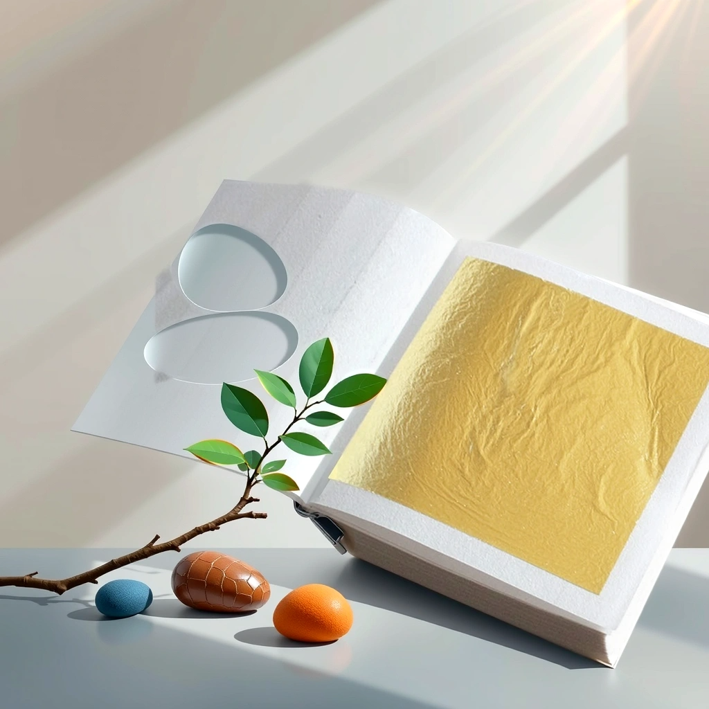 Premium 24K gold leaf, produced to stringent FSSAI and FDA standards for purity and safety.